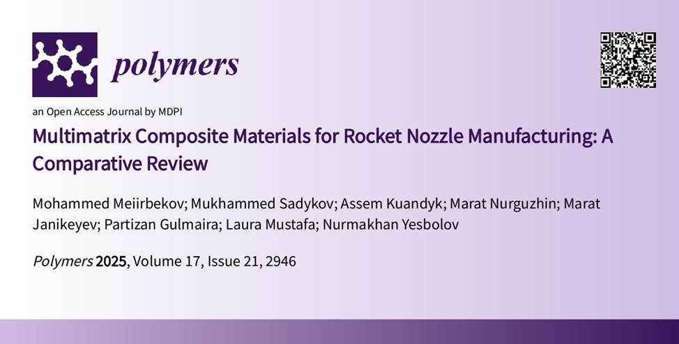 A scientific article titled “Multimatrix Composite Materials for Rocket Nozzle Manufacturing: A Comparative Review”, prepared by the research team of JSC “National Center of Space Research and Technology” (NCSRT), has been published in the reputable international journal Polymers (MDPI), which is ranked Q1 in both the Scopus and Web of Science databases.